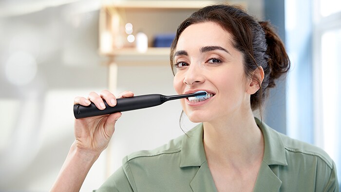 Once you’ve decided how to get white teeth, at home or at the dentist, you’ll need to keep them that way. Most professional procedures will last between 12 and 24 months, and you can keep it closer to 24 than to 12 with the right oral care. It's a good idea to adapt an oral hygiene routine to keep your teeth looking and feeling healthy. Brushing twice a day and flossing once a day not only keeps your teeth protected from stains, but it keeps them protected from plaque as well. Plaque can cause yellowed teeth, which can undo the good work of your whitening. Plaque can also spawn bacteria that can lead to serious damage, and even (in extreme cases) tooth loss. Switching to an electric toothbrush can help you keep your teeth healthy and clean, since most electric toothbrushes are more efficient than manual brushing. The Sonicare ExpertClean brush, for example, has an intuitive pressure sensor, and advanced brush head technology to help you get the best clean. Sync it up with the phone app for a guided clean.