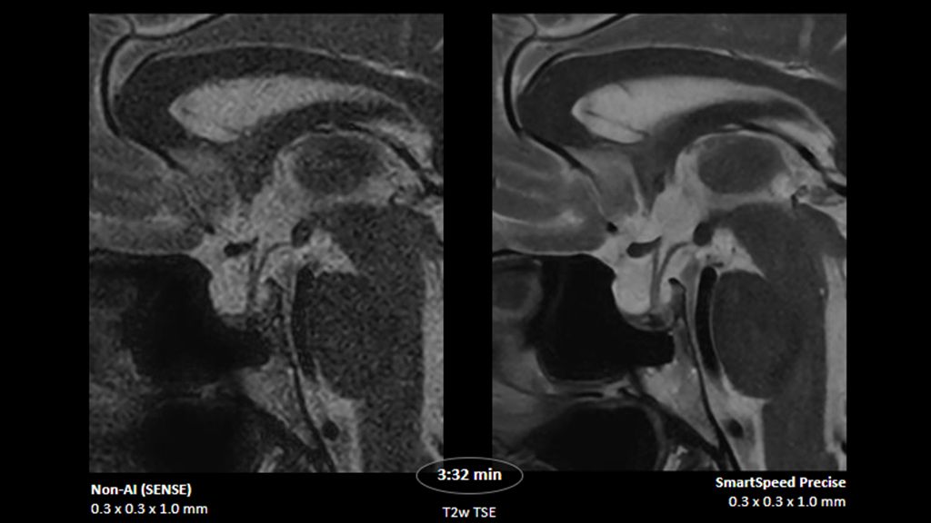2. Reconstruction technology Compared to conventional (SENSE/ Compressed SENSE, SmartSpeed AI) imaging. Sharpness was evaluated with phantom scanning.