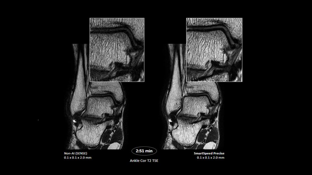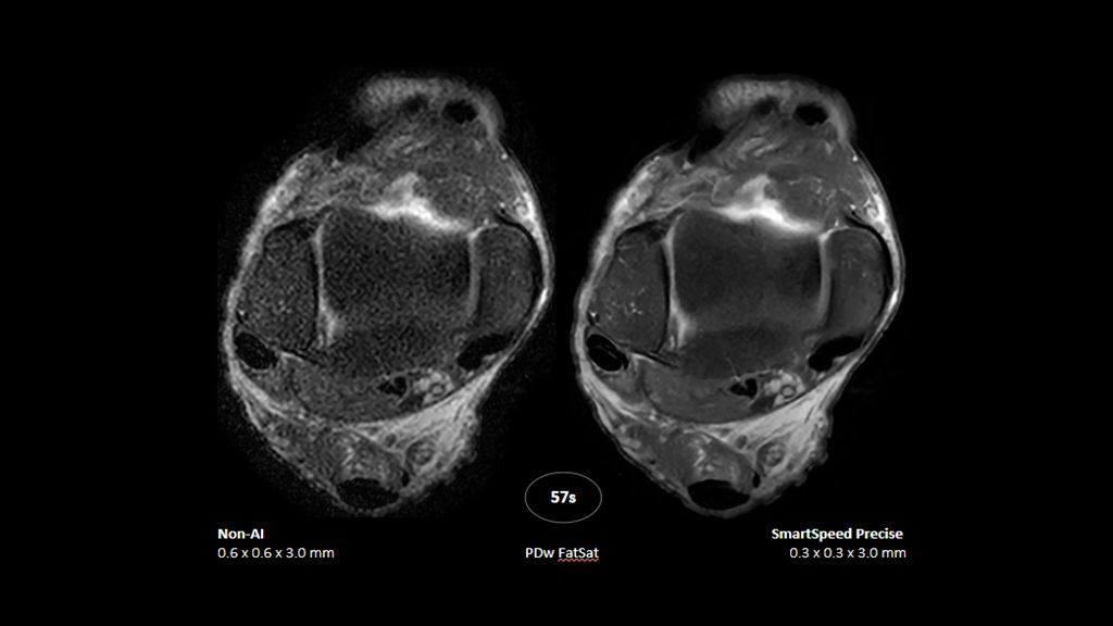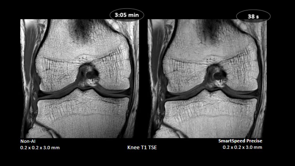 2. Reconstruction technology Compared to conventional (SENSE/ Compressed SENSE, SmartSpeed AI) imaging. Sharpness was evaluated with phantom scanning.